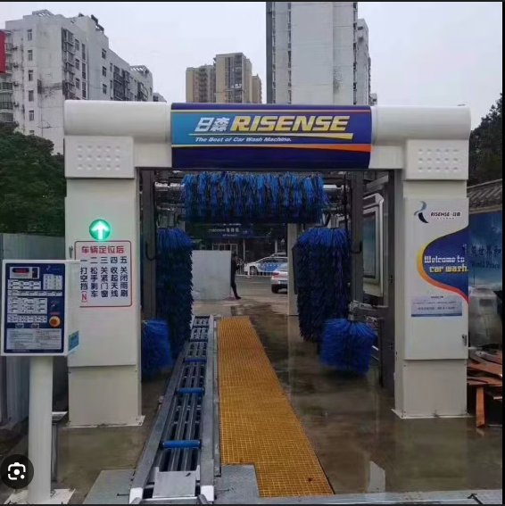 CF-340 est une machine de lavage automatique à portique (rollover), conçue pour un nettoyage efficace des voitures via un système à 5 brosses et un contrôle MCU